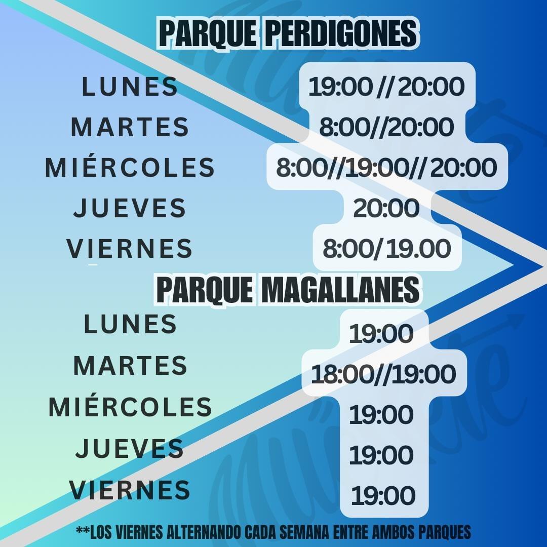 HORARIOS Y PARQUES DONDE PODRÁS ENTRENAR CON NOSOTROS